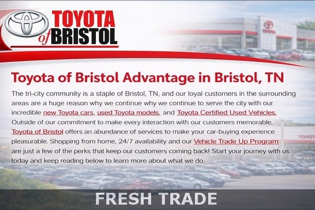 Here at Toyota of Bristol, we strive to provide our customers with outstanding service before, during and after each purchase, whether it's a brand-new Toyota, a quality used pre-owned vehicle or a simple oil change. It's just one reason why customers from the Tri-Cities region and throughout Tennessee and Virginia keep coming back to Toyota of Bristol.